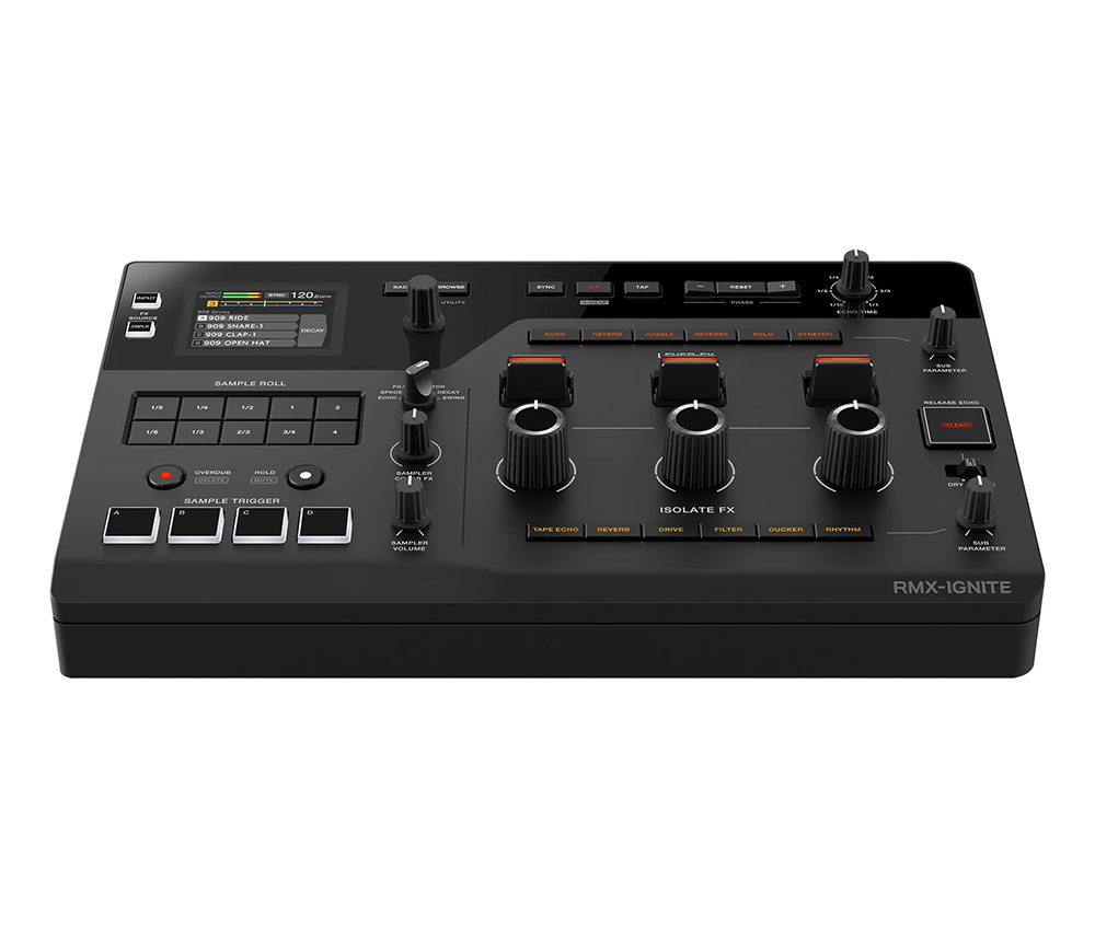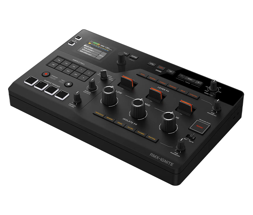The RMX-IGNITE brings levers and large knobs to intuitively control effects and bring your mixes to the next level. The enhanced sampler section makes it easy to remix tracks live while the Groove Roll feature allows adding groove and expression to samples. And, with the latest DSP and high-grade audio converters, the unit delivers professional-level sound quality.